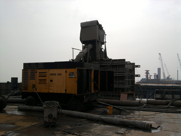 前期勘察与方案定制:在项目启动前,贤易技术团队会实地考察工地地形、地质及空气需求峰值,推荐合适排量(如常用的大型桥梁桩基施工可能需要750CFM以上的大排量设备)与数量的阿特拉斯柴驱空压机组,并规划最优布局方案。